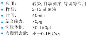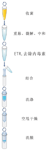 內(nèi)毒素(Endotoxin)是革蘭氏陰性菌細(xì)胞壁上的一種脂多糖,它能引起哺乳動物發(fā)熱,甚至?xí)?dǎo)致動物休克。常規(guī)的質(zhì)粒純化試劑盒由于無法去除內(nèi)毒素的污染,從而大大降低了質(zhì)粒轉(zhuǎn)染的效率。Omega公司采用獨(dú)特的內(nèi)毒素吸附緩沖液(ETR Solution),能有效去除質(zhì)粒中的內(nèi)毒素污染,純化的質(zhì)粒中內(nèi)毒素含量小于0.1EU/µg,可大大提高轉(zhuǎn)染實(shí)驗(yàn)效率和動物注射效果。從培養(yǎng)過夜的菌液中收集細(xì)菌后,采用經(jīng)典的堿裂解法裂解細(xì)菌,離心去除染色體DNA和蛋白質(zhì),得到含有質(zhì)粒和內(nèi)毒素的上清液,加入ETR Solution吸附內(nèi)毒素,得到不含內(nèi)毒素的上清液,調(diào)節(jié)結(jié)合條件并轉(zhuǎn)移至硅膠柱,離心吸附質(zhì)粒DNA,經(jīng)兩種溶液洗滌去除殘余蛋白質(zhì)和各種雜質(zhì),最后用Endotoxin-free Elution Buffer洗脫出質(zhì)粒DNA。