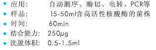 高純質粒中量提取試劑盒采用中量結合柱,能快速方便地從各種來源的大腸桿菌中提取高純度的質粒DNA,一次可處理25-50ml培養(yǎng)12-16小時的細菌培養(yǎng)液,純化過程不需要用到任何有害的有機物抽提和耗時的乙醇或異丙醇沉淀,純化的質??芍苯佑糜跍y序,酶切或長期保存。