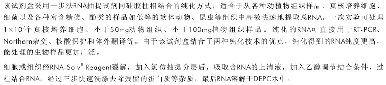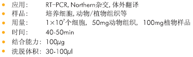 從1×107個真核細胞,50mg動物/100mg植物組織中提取高達100μg總RNA
