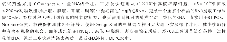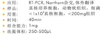 從<1×108個真核培養(yǎng)細胞或<200mg動物軟組織中提取高達1mg總RNA